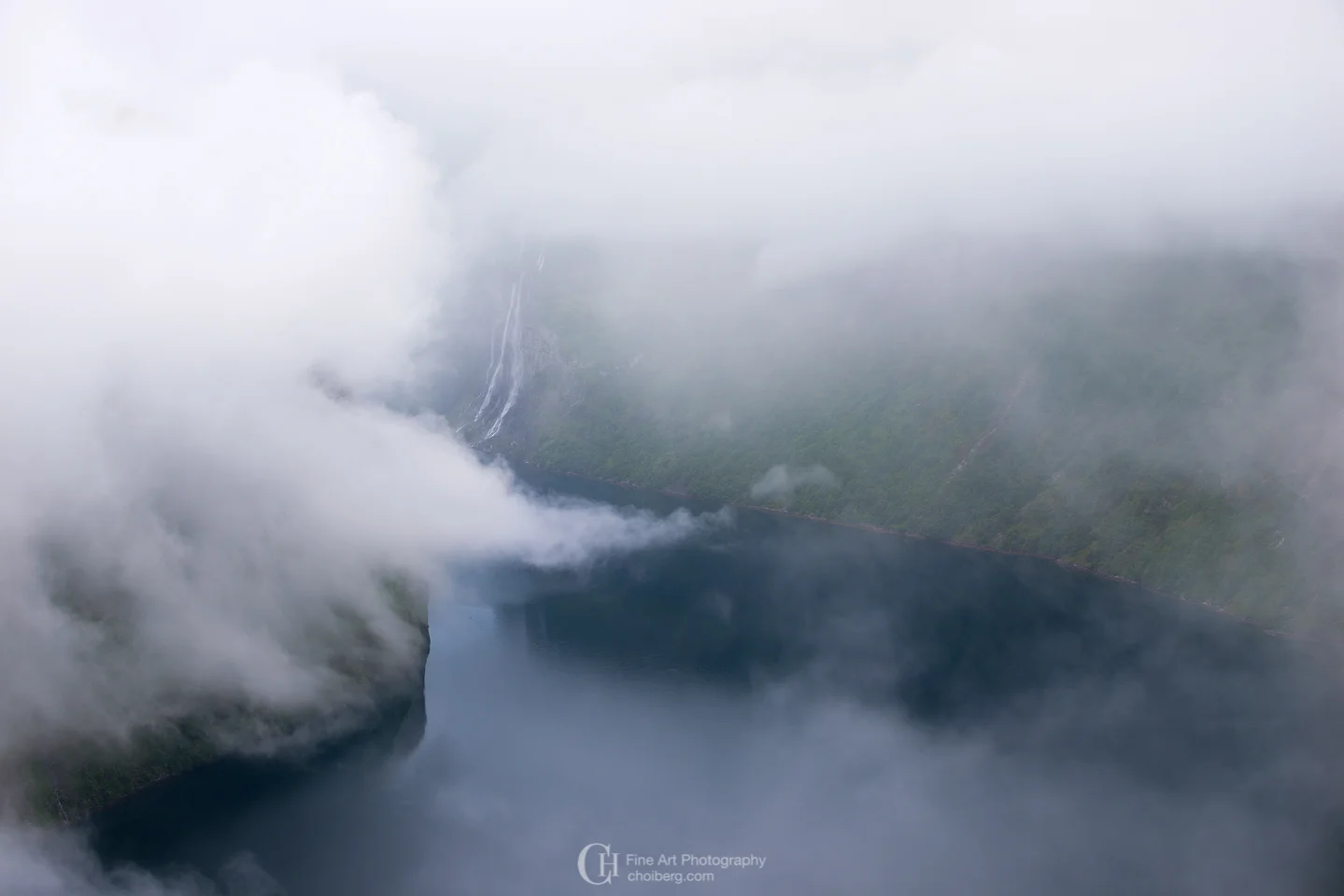 low clouds surrounding geirangerfjorden